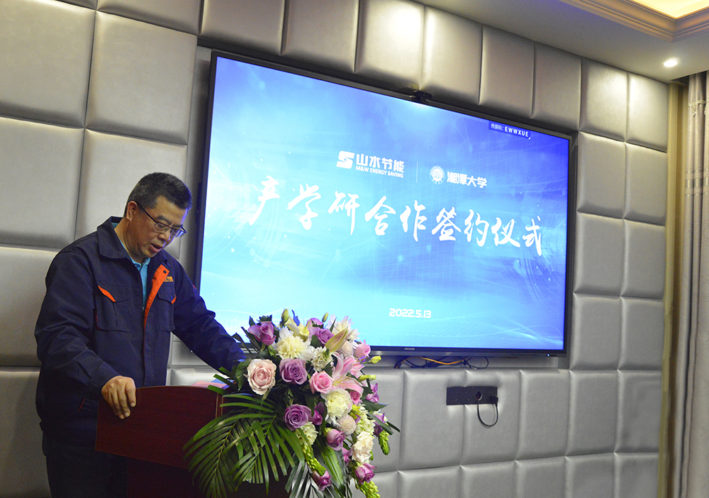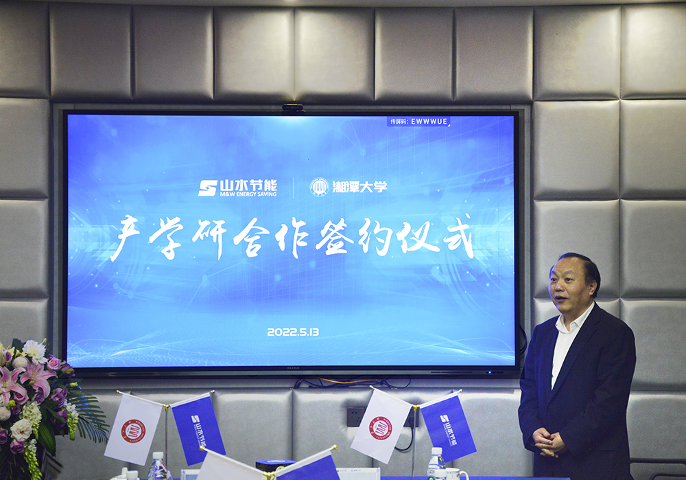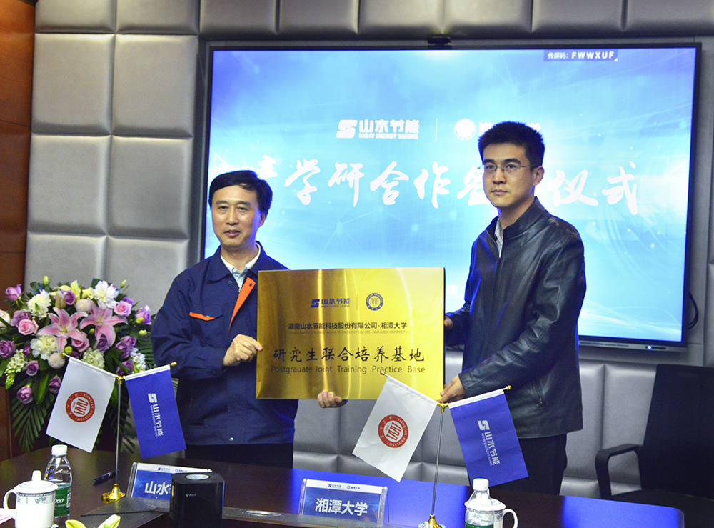 5月13日下午,隆重举行了湖南山水节能科技股份有限公司(以下简称山水节能)与湘潭大学校企合作签约暨研究生联合培养实践基地授牌仪式。