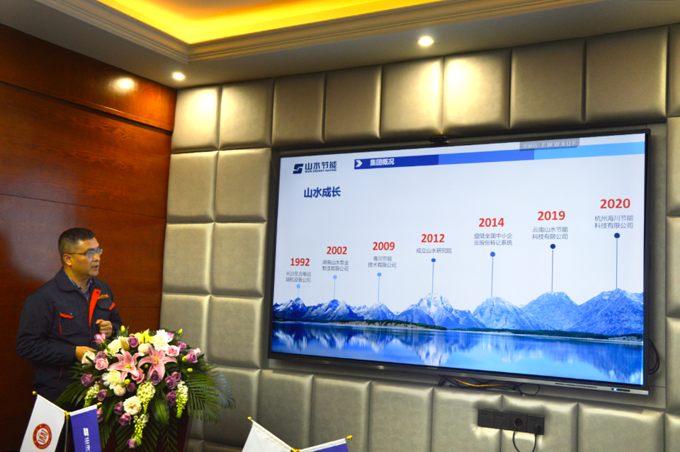 湘潭大学刘长青副校长对山水节能三十年如一日坚持自主研发,打造企业核心竞争力表示赞赏。对于山水节能作为知名企业,积极推动与高校进行科研合作的行动表示肯定和欢迎。湘潭大学盛明科副校长十分认同我司“人本如山,上善若水”的人文理念,针对校企合作提出了围绕“精确、深化、有效、落地”为核心的“三用”思想。用心深化,校企要充分融合科技合作与人才培养,真正深刻有效的开展相关工作;用力推进,积极创建专家攻关团队,共同解决行业的痛点问题;用情携手,在共同合作目标的基础上,建立真诚友好的战略合作关系,全面开展互学互助,实现校企双赢。